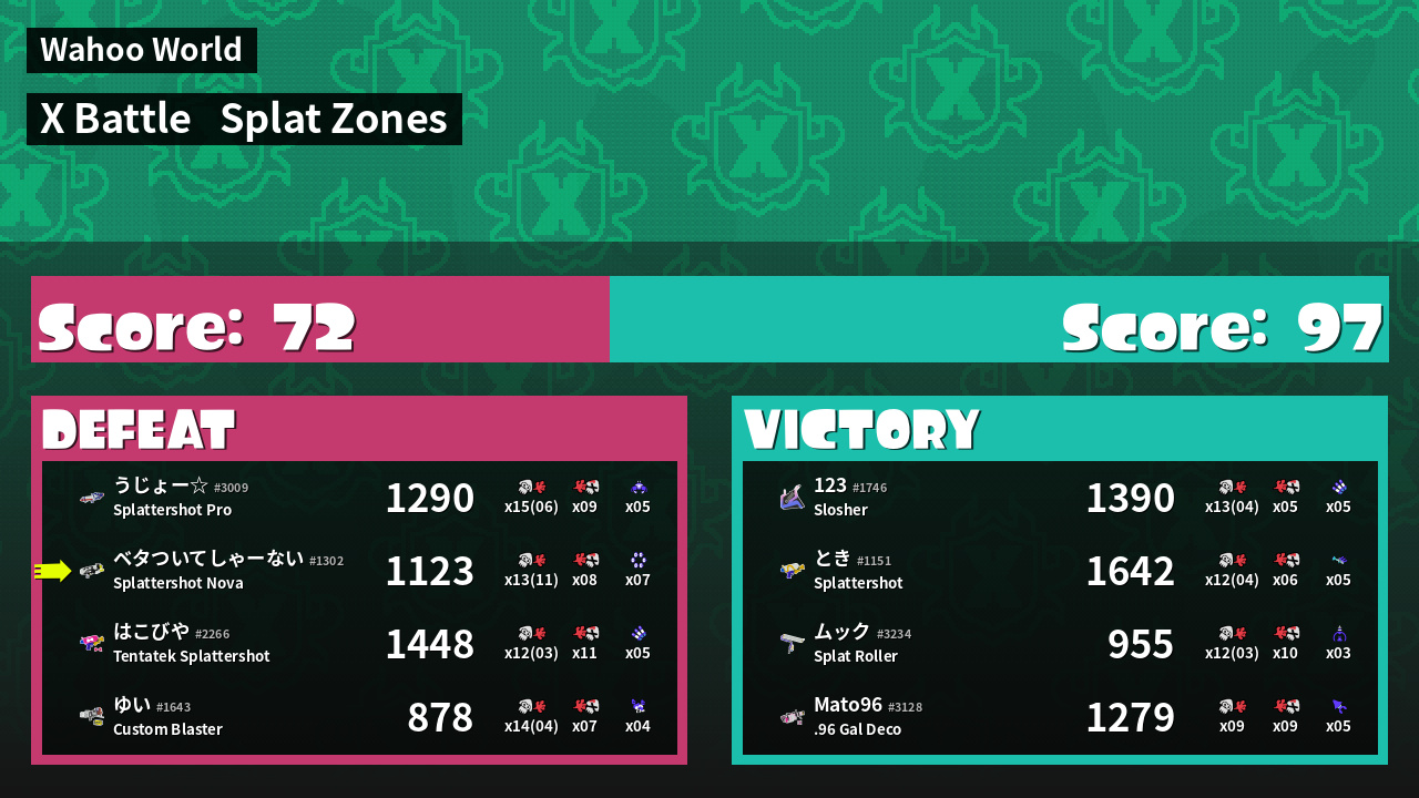 | Medals | #1 Super Jump Spot #1 Splat Assister #1 Ink Consumer | ||