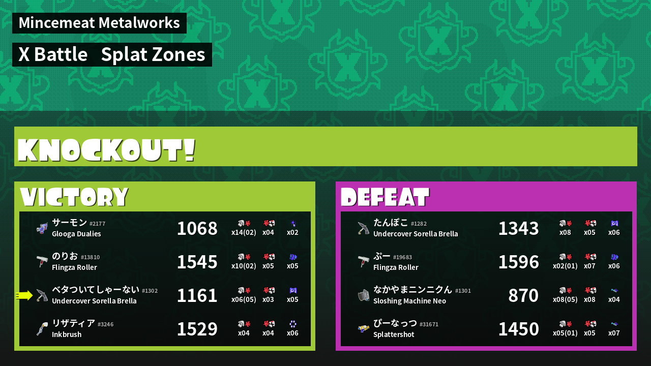 | Mode | Splat Zones - X Battle | ||