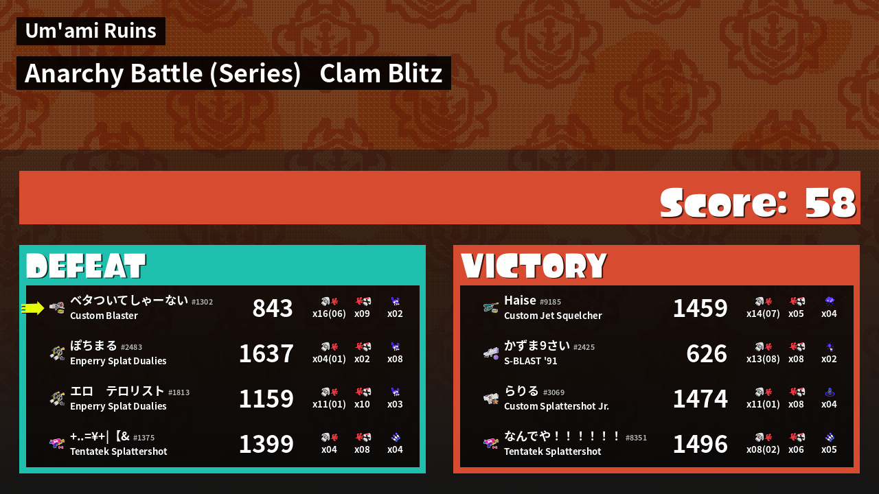 | Mode | Clam Blitz - Anarchy Battle (Series) | ||