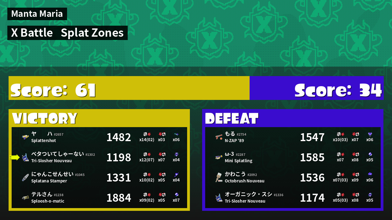| Medals | #1 Splat Zone Guard #1 Splat Assister #1 Tacticooler User | ||