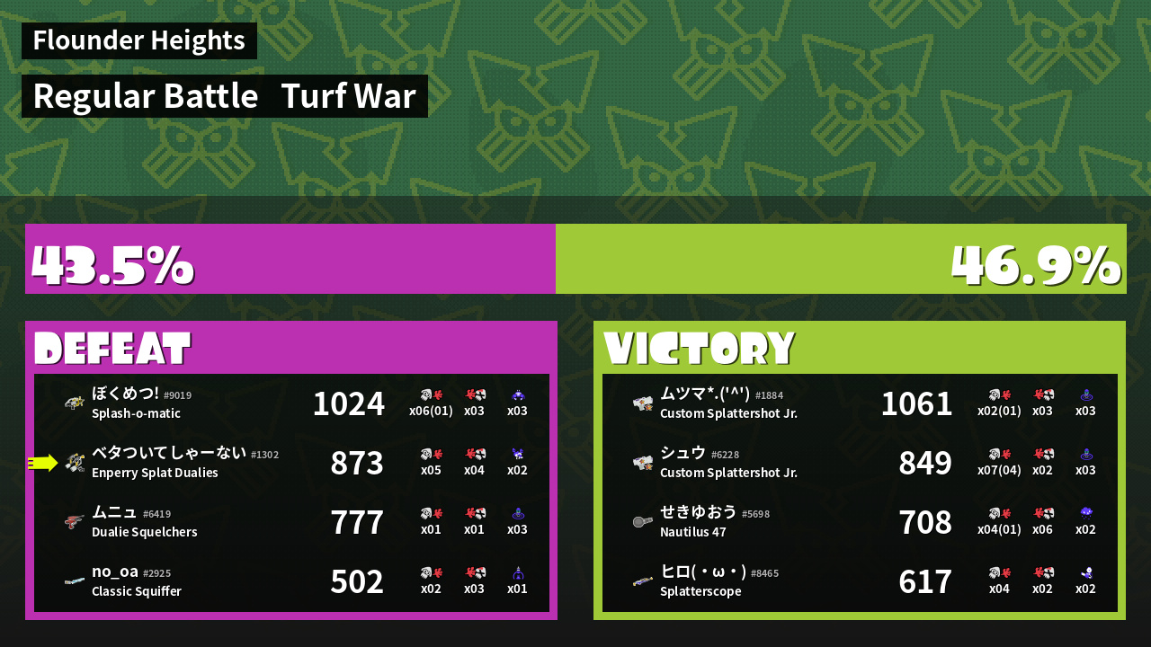 | Mode | Turf War - Regular Battle | ||
