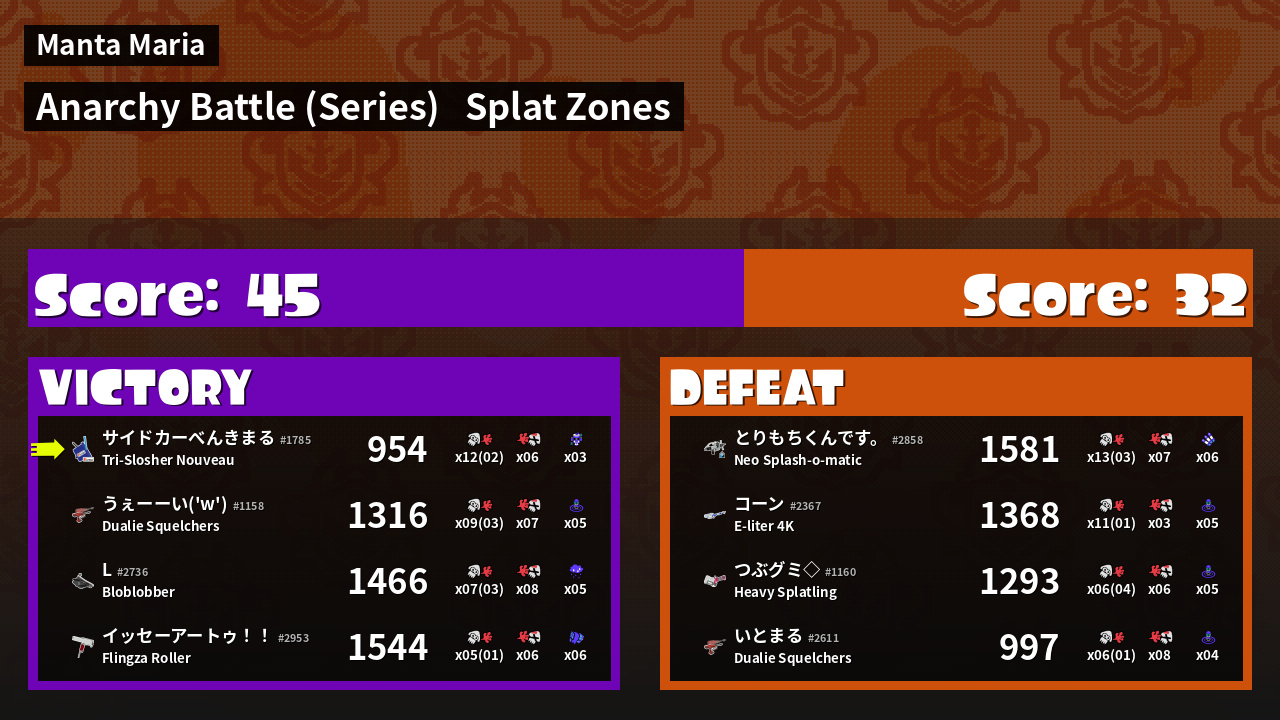 | Mode | Splat Zones - Anarchy Battle (Series) | ||