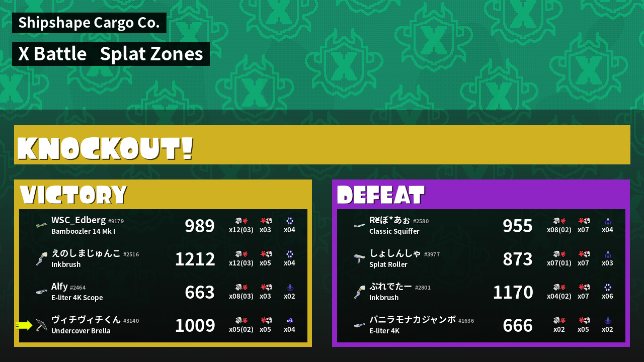 | Mode | Splat Zones - X Battle | ||