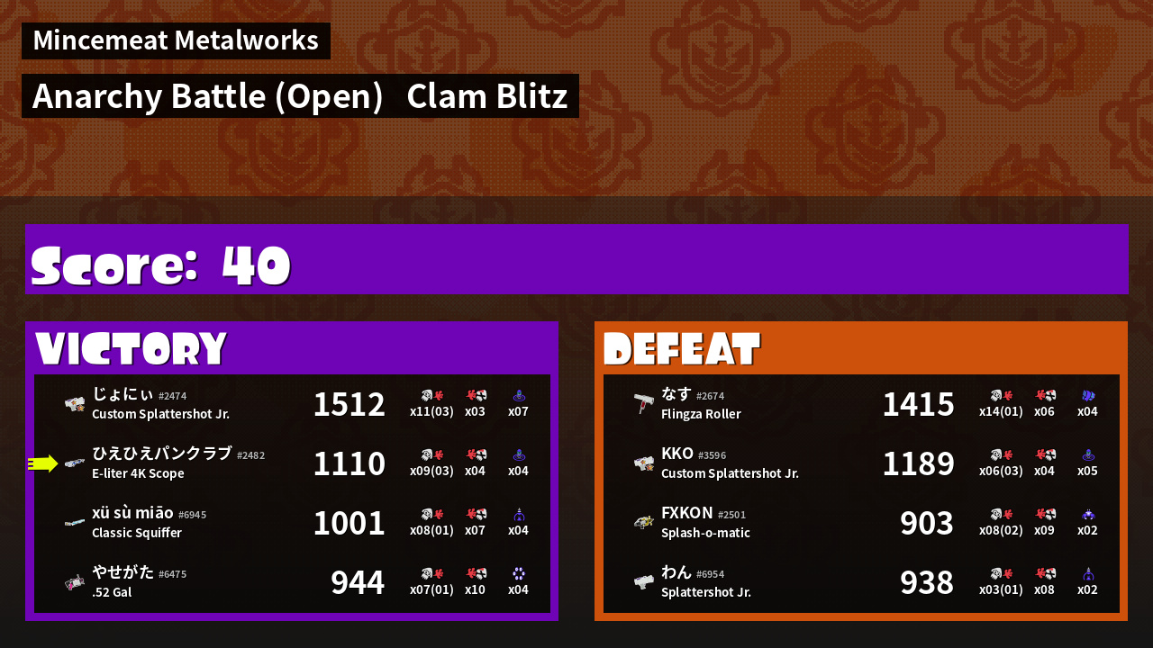 | Mode | Clam Blitz - Anarchy Battle (Open) | ||