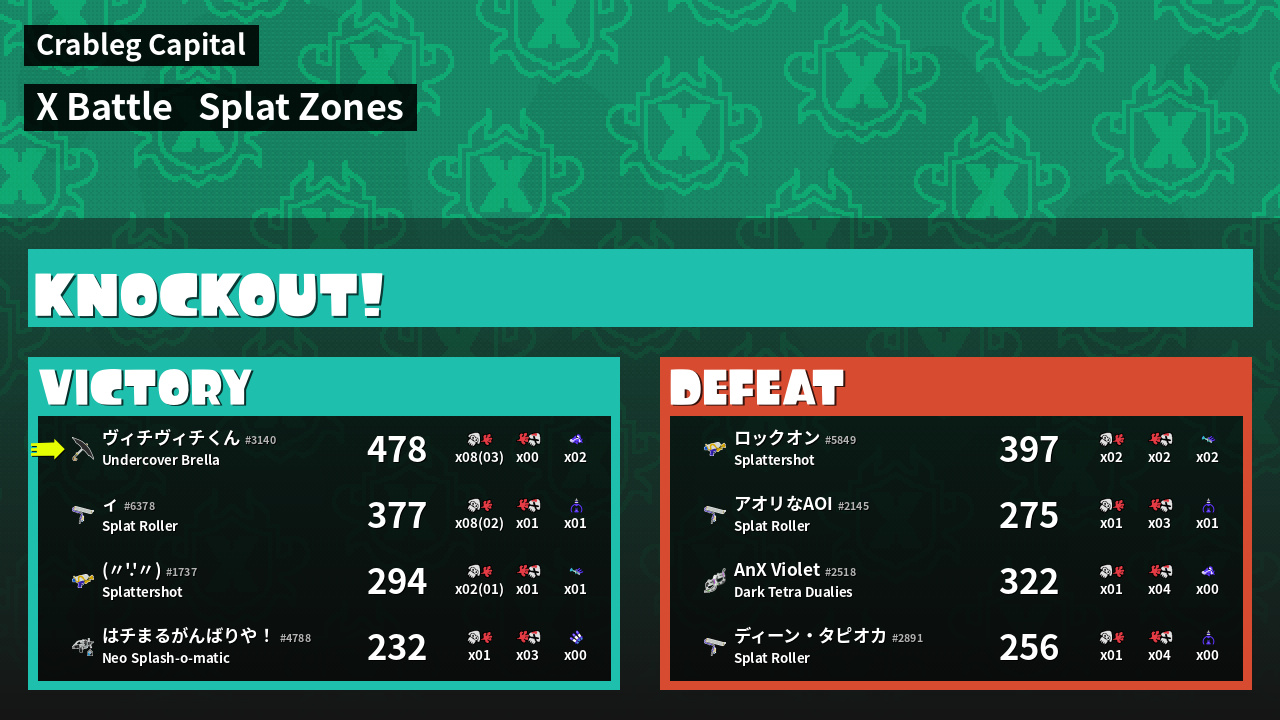| Medals | #1 Overall Splatter #1 Splat Zone Inker #1 Splat Zone Guard | ||