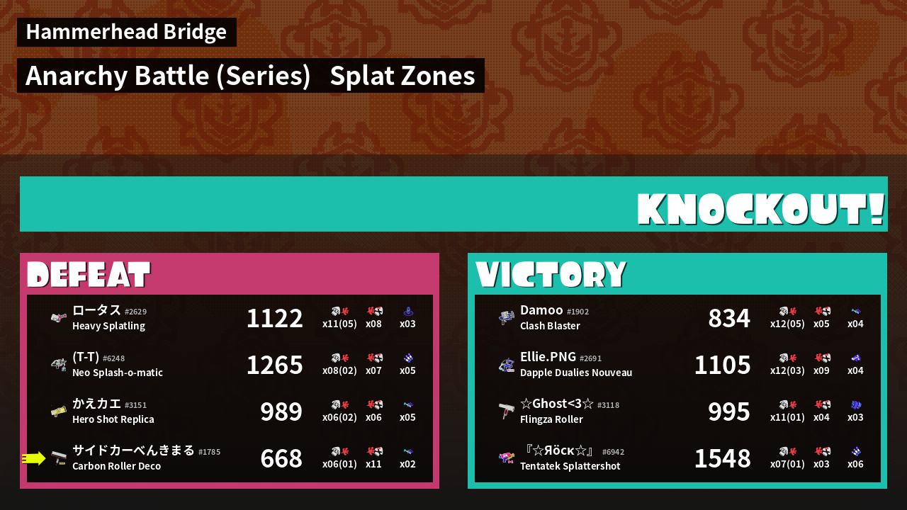 | Weapon | Carbon Roller Deco ( Burst Bomb / Trizooka) | ||