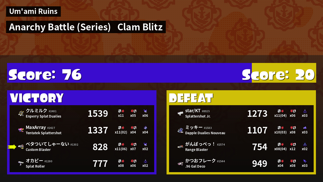 | Mode | Clam Blitz - Anarchy Battle (Series) | ||