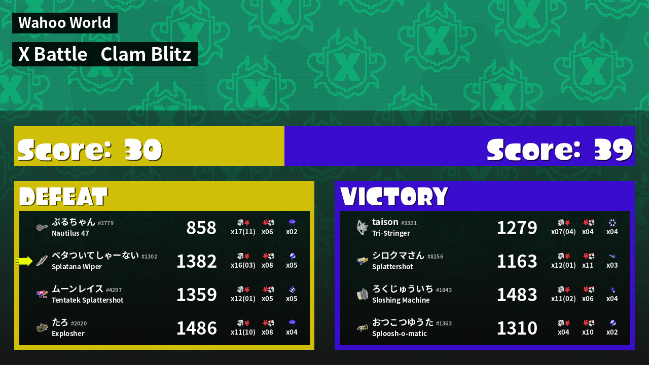 | Medals | #1 Score Booster #1 Clam Carrier #1 Popular Target | ||