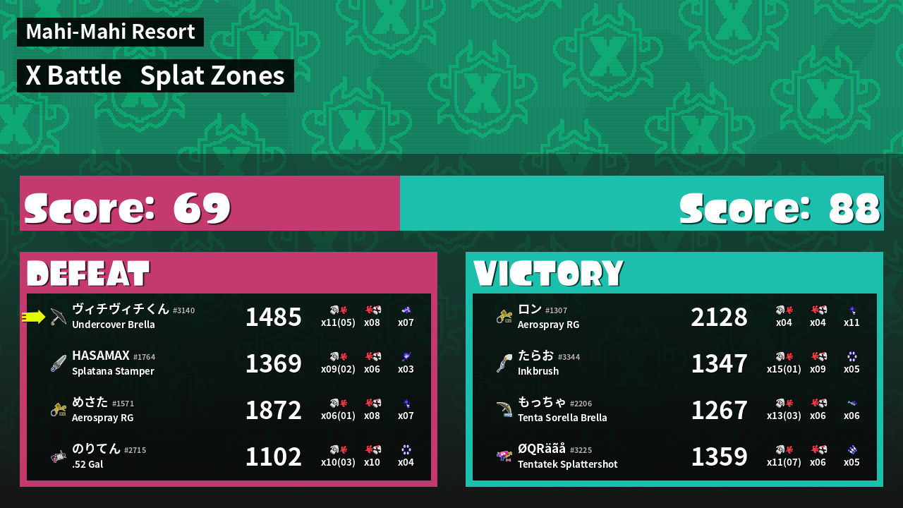 | Medals | #1 Overall Splatter #1 Splat Zone Guard #1 Splat Assister | ||