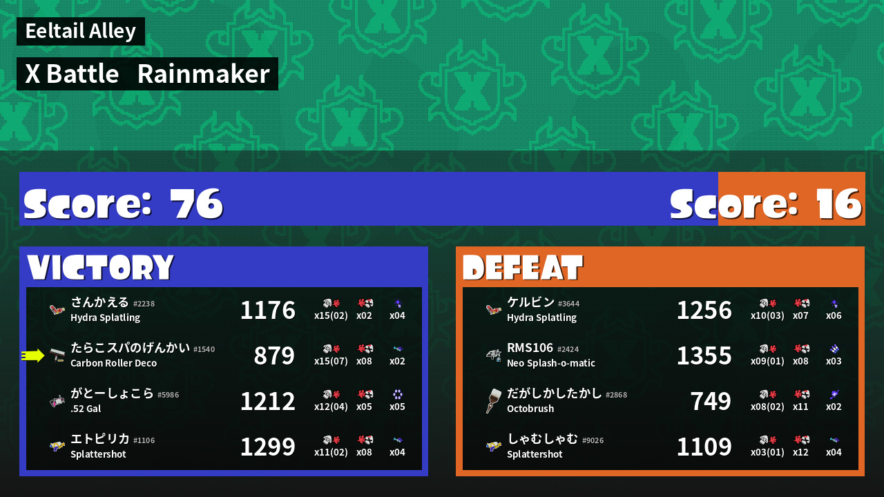 | Mode | Rainmaker - X Battle | ||