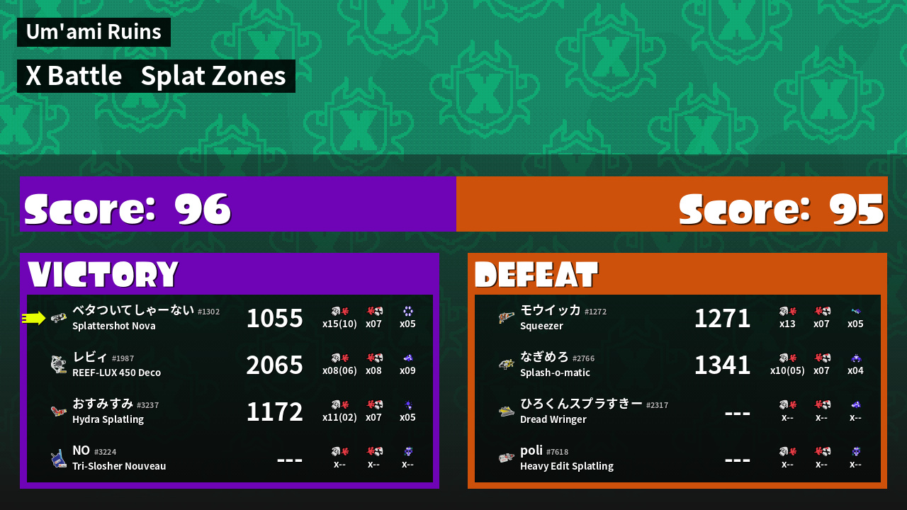 | Medals | #1 Overall Splatter #1 Splat Zone Guard #1 Popular Target | ||