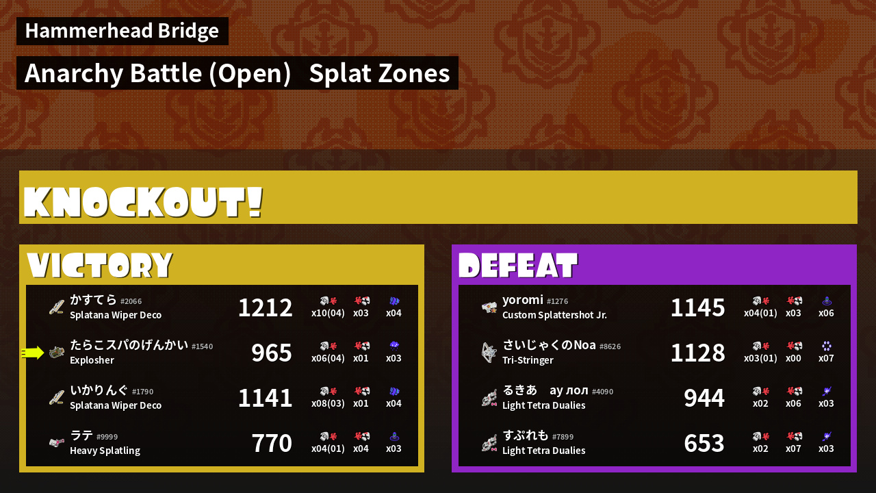| Mode | Splat Zones - Anarchy Battle (Open) | ||