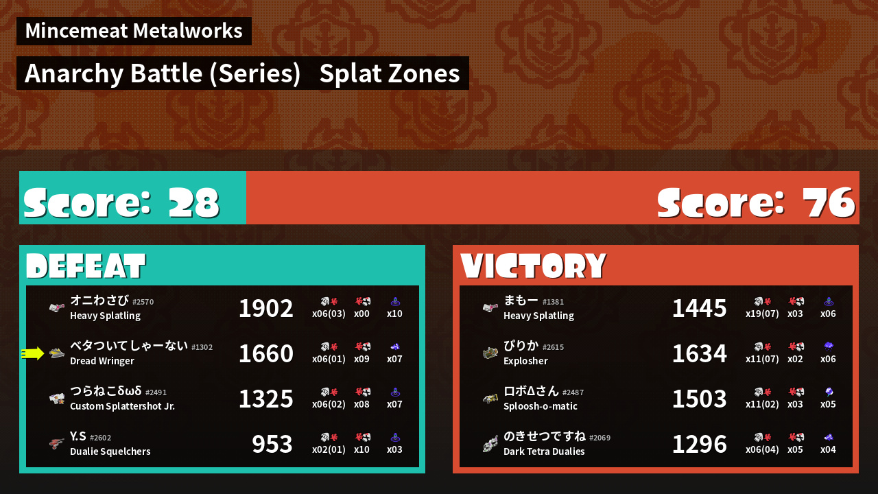 | Mode | Splat Zones - Anarchy Battle (Series) | ||