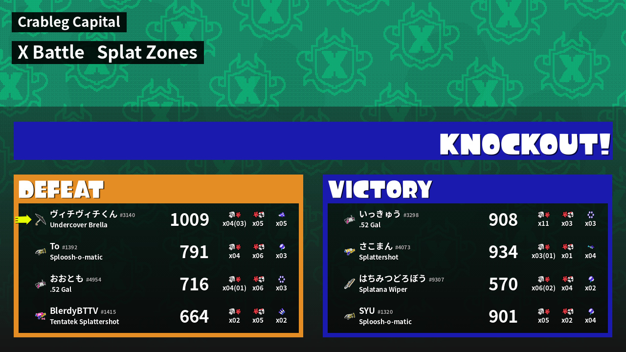 | Mode | Splat Zones - X Battle | ||