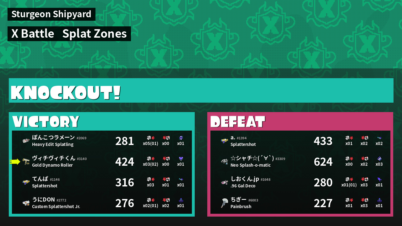 | Weapon | Gold Dynamo Roller ( Splat Bomb / Super Chump) | ||