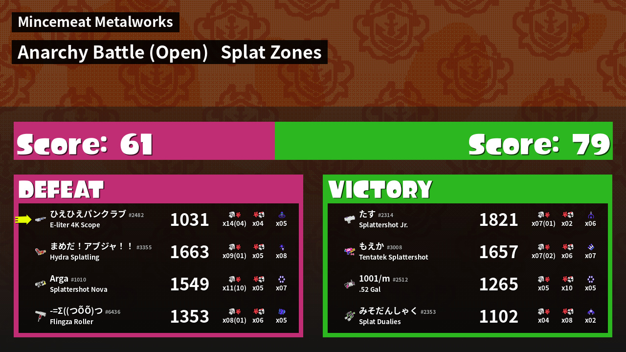| Mode | Splat Zones - Anarchy Battle (Open) | ||