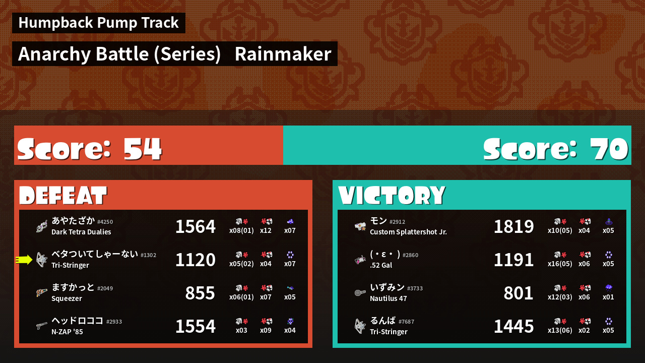| Mode | Rainmaker - Anarchy Battle (Series) | ||