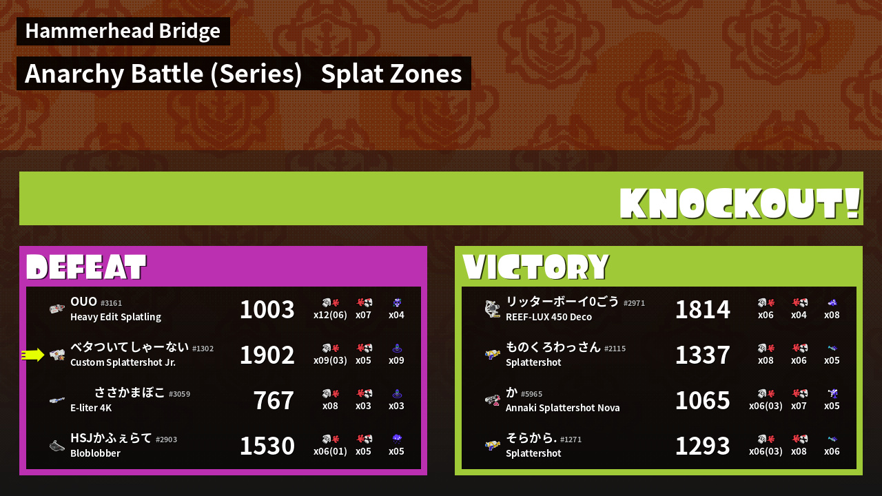 | Medals | #1 Splat Zone Inker #1 Turf Inker #1 Splat Zone Hero | ||