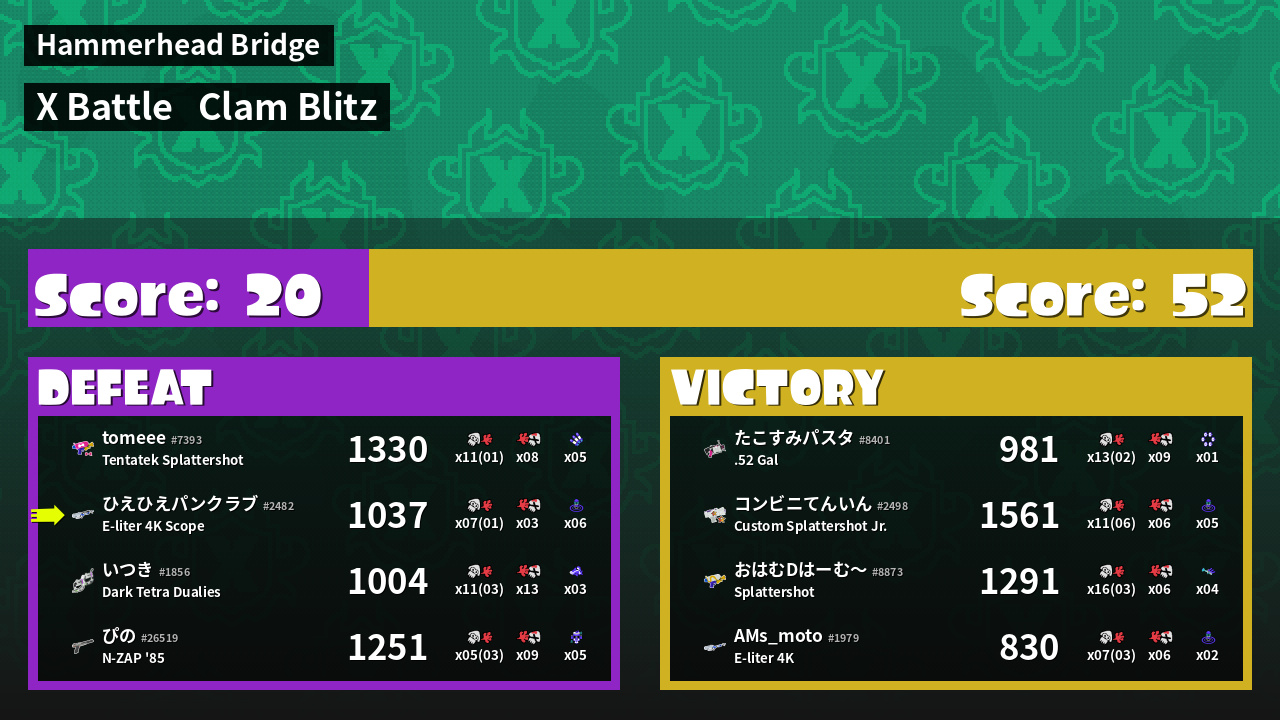 | Mode | Clam Blitz - X Battle | ||
