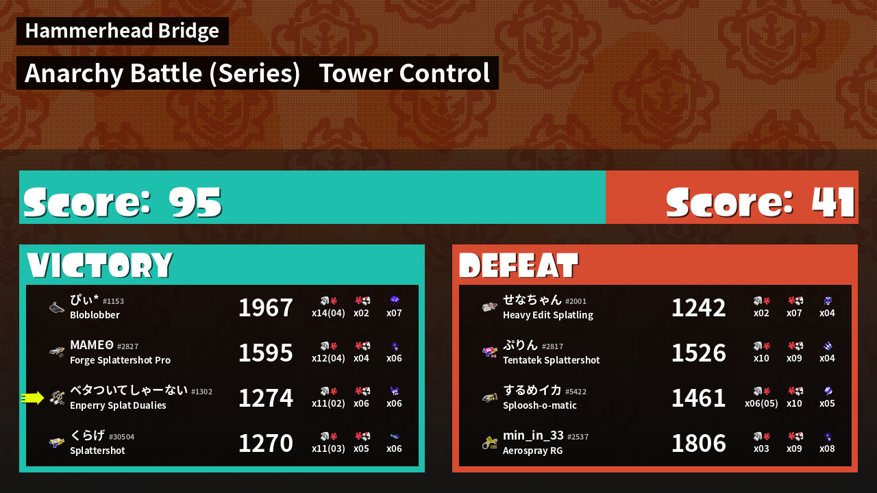 | Weapon | Enperry Splat Dualies ( Curling Bomb / Triple Splashdown) | ||