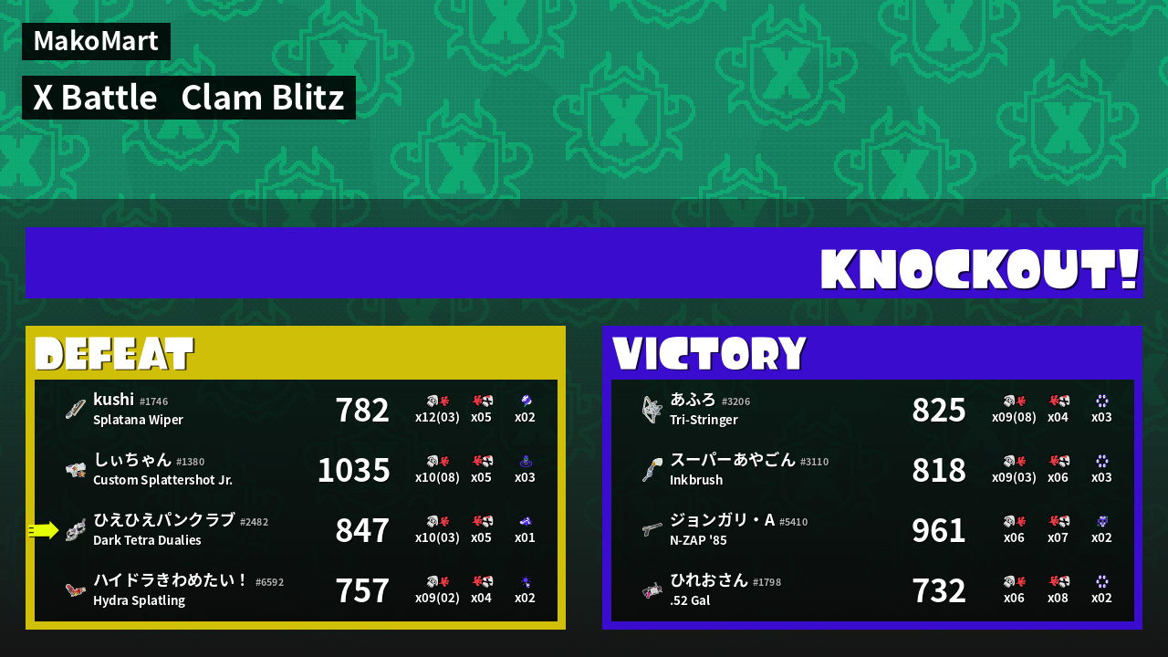 | Mode | Clam Blitz - X Battle | ||