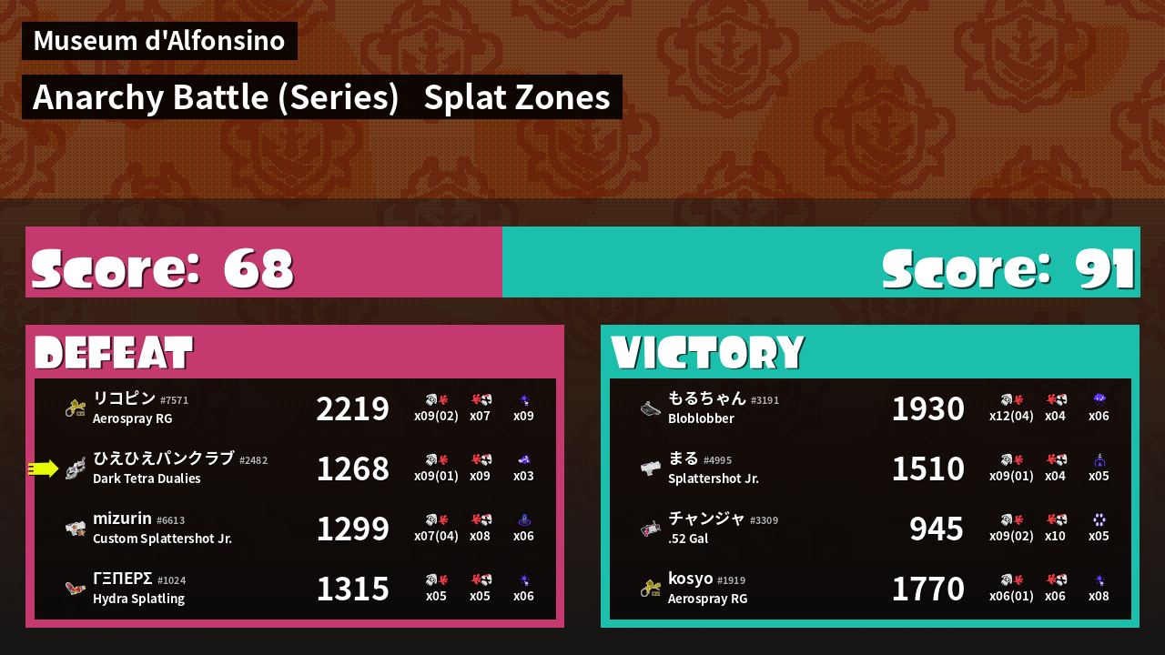 | Mode | Splat Zones - Anarchy Battle (Series) | ||