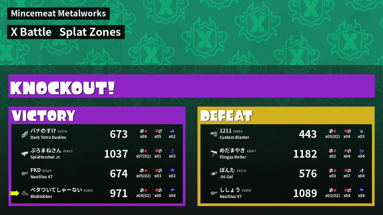 | Medals | #1 Super Jump Spot #1 Splat Assister #1 Damage Taker | ||