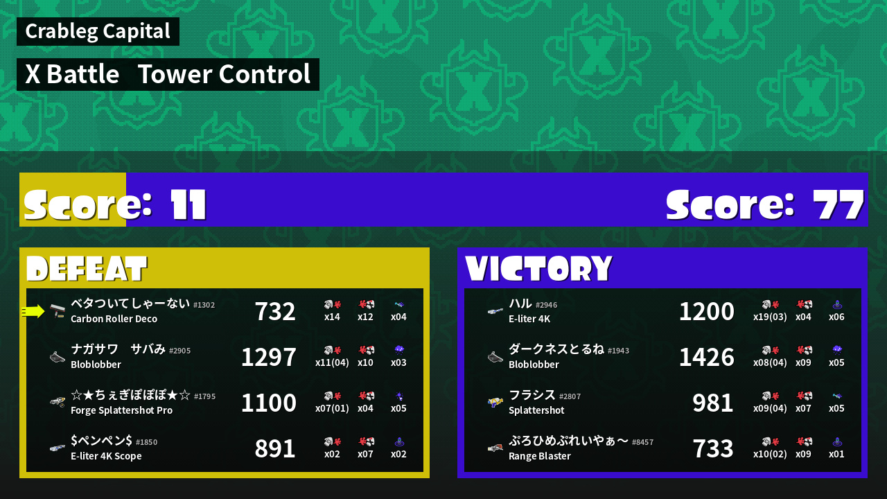 | Mode | Tower Control - X Battle | ||