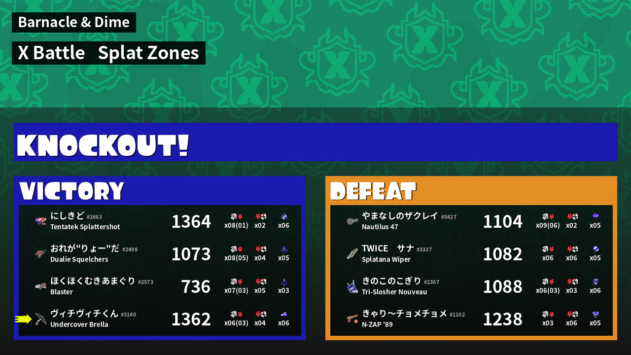 | Mode | Splat Zones - X Battle | ||