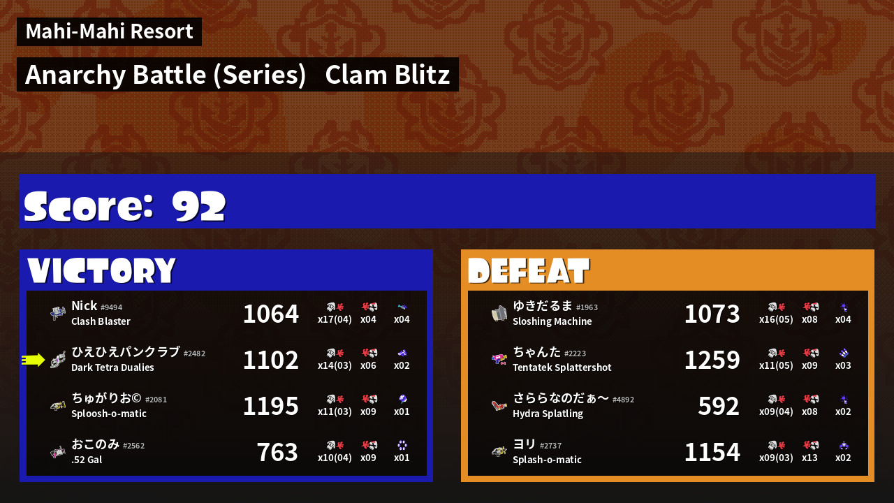 | Mode | Clam Blitz - Anarchy Battle (Series) | ||