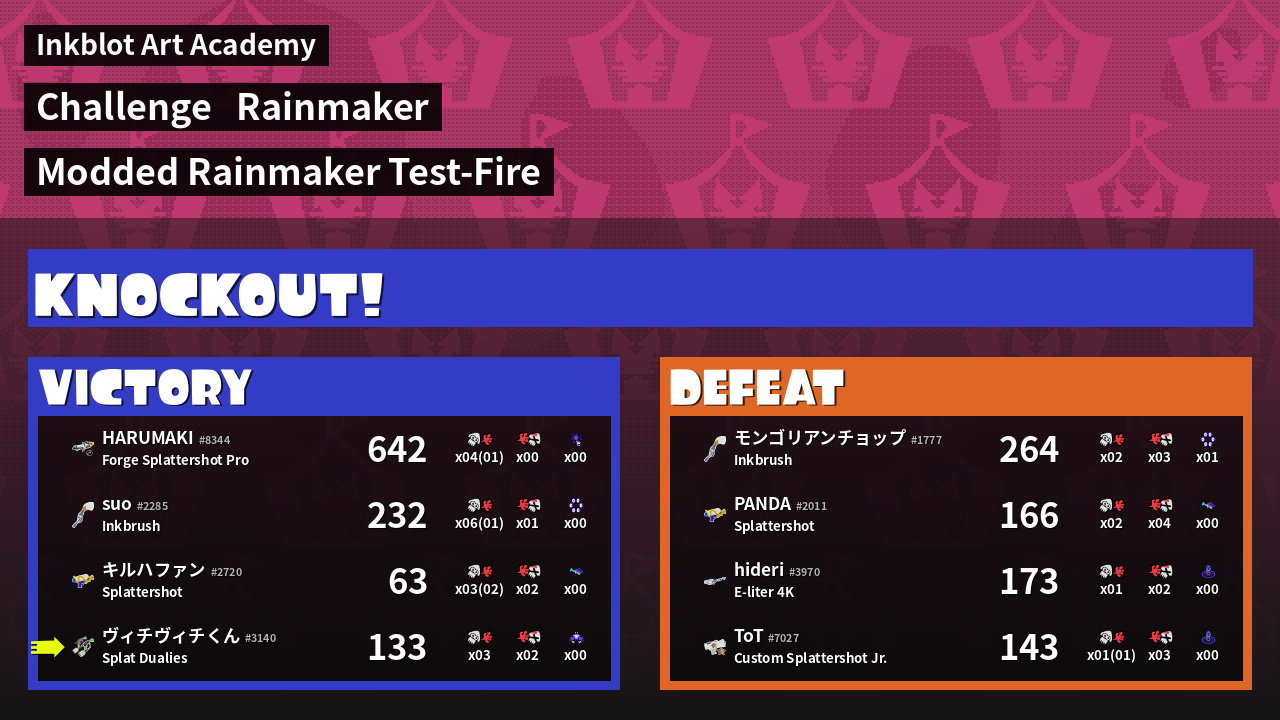 | Name | Weapon | Inked | k |