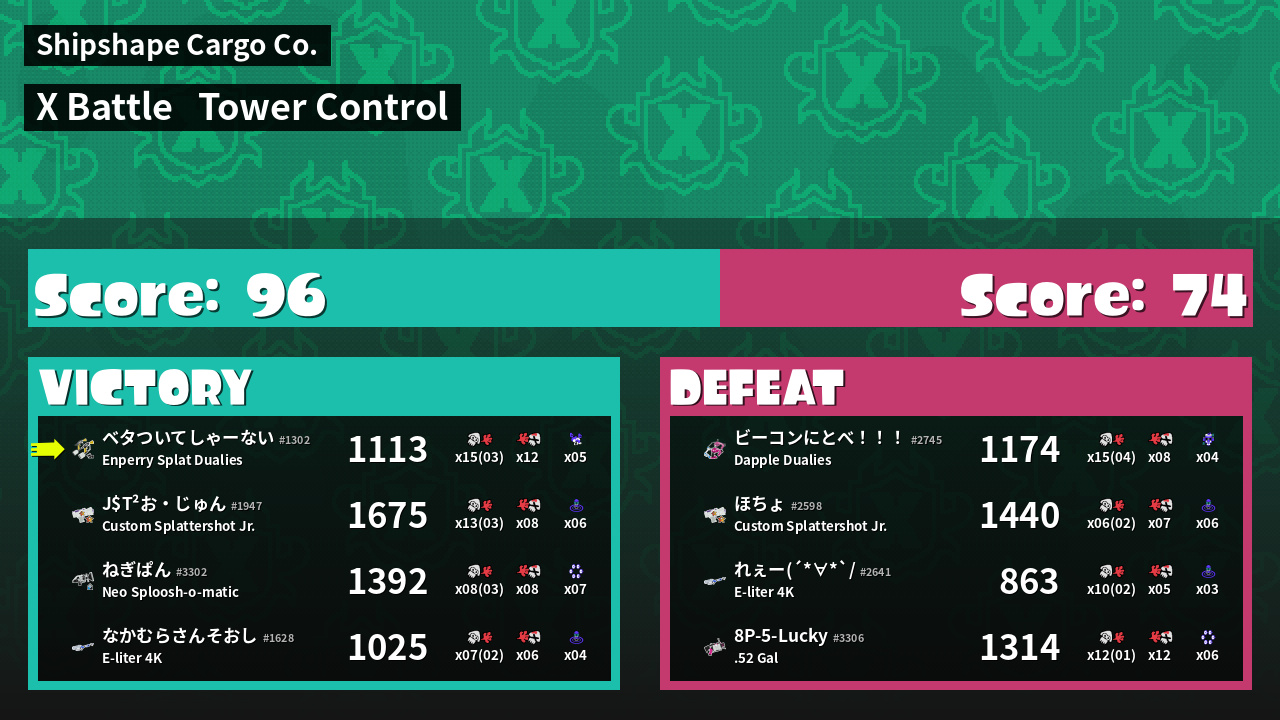 | Weapon | Enperry Splat Dualies ( Curling Bomb / Triple Splashdown) | ||