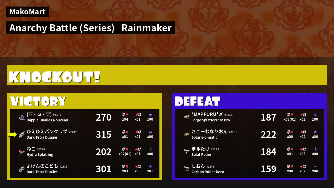 | Mode | Rainmaker - Anarchy Battle (Series) | ||