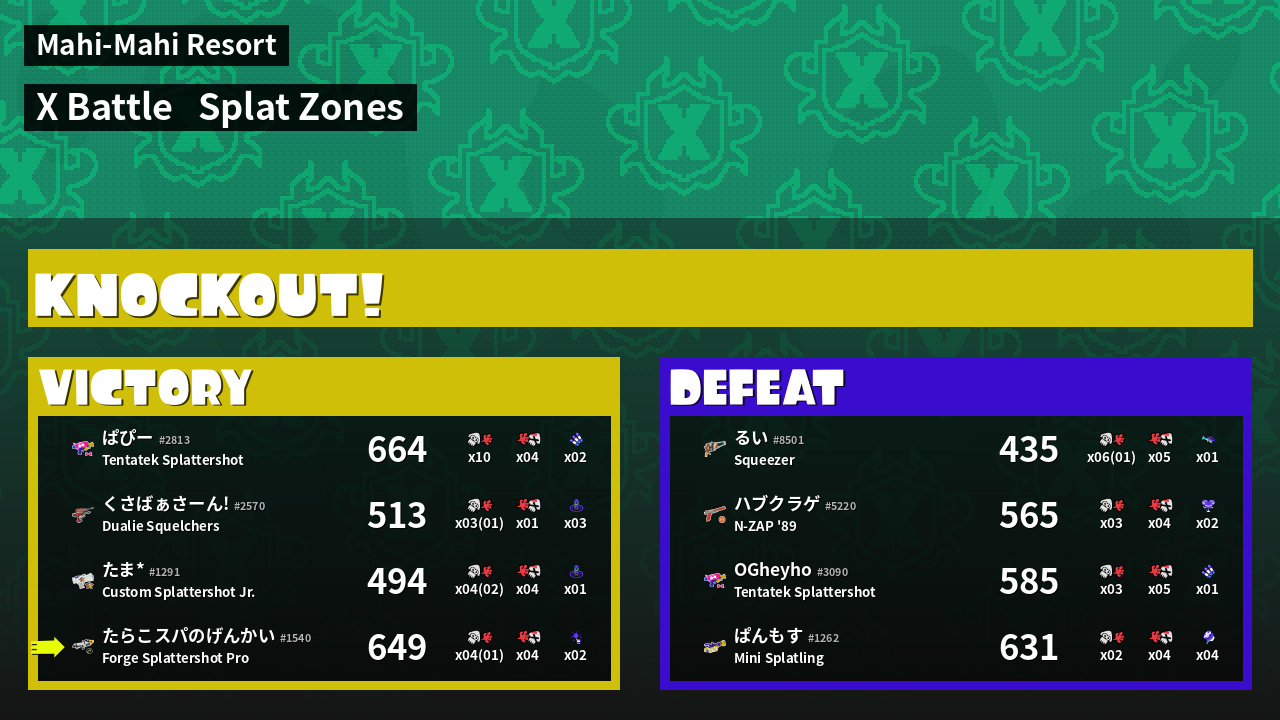| Mode | Splat Zones - X Battle | ||