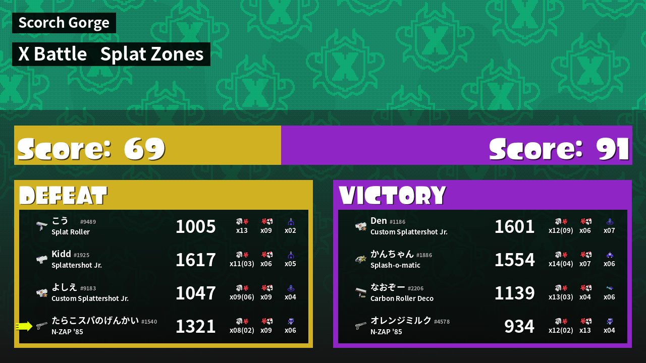 | Mode | Splat Zones - X Battle | ||