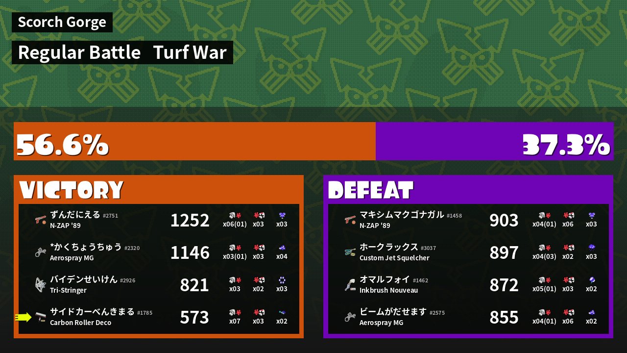 | Mode | Turf War - Regular Battle | ||