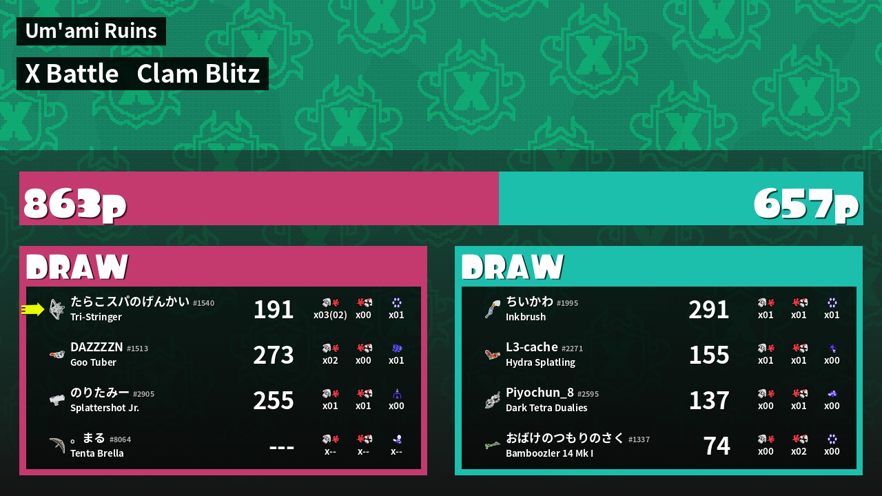 | Bad Guys | 657 | 2 | 5 | 0.40 | 1 | |||