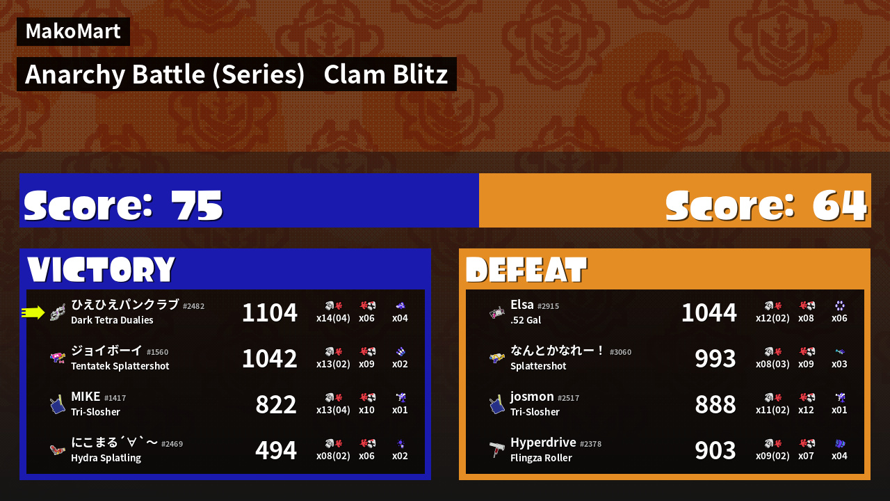 | Mode | Clam Blitz - Anarchy Battle (Series) | ||