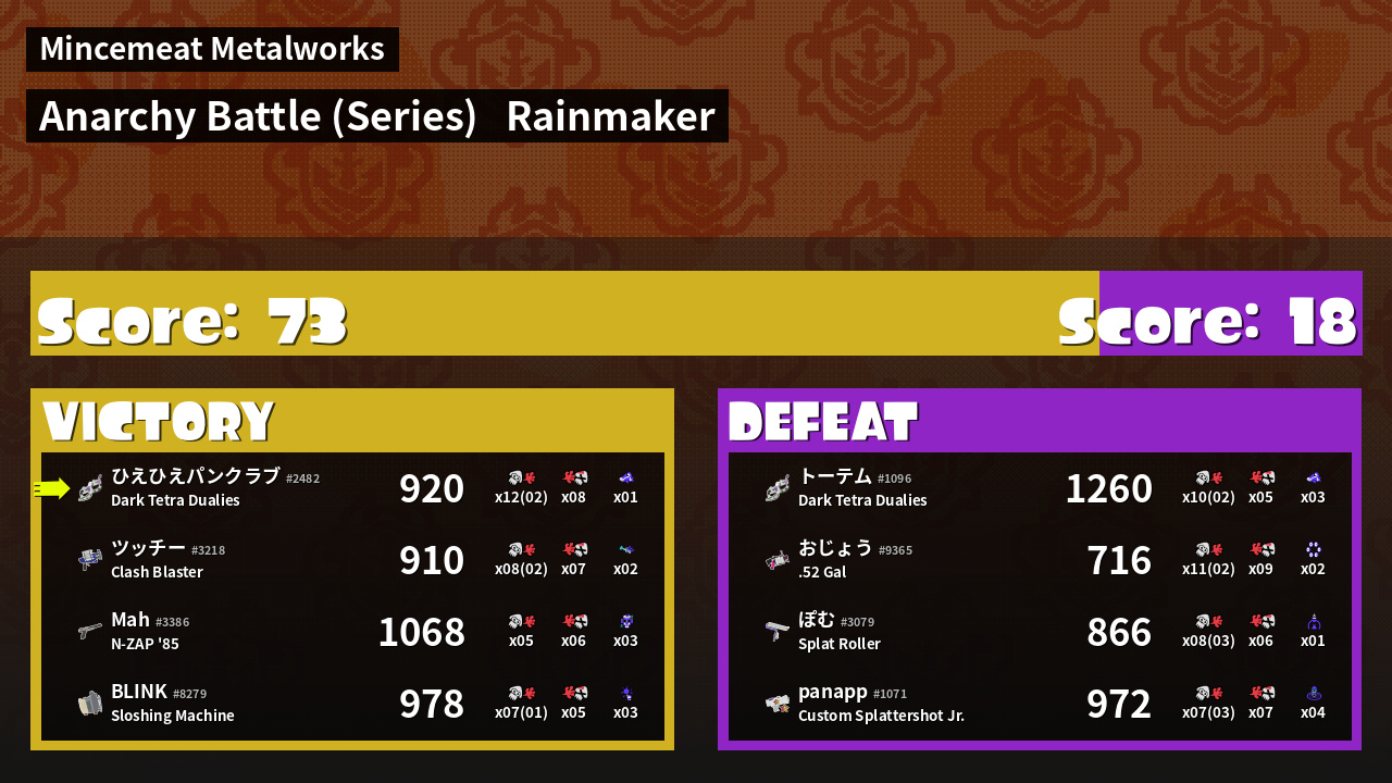 | Mode | Rainmaker - Anarchy Battle (Series) | ||