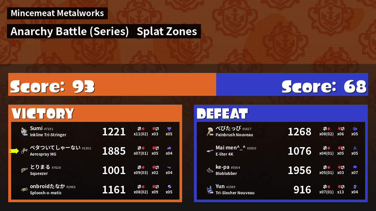 | Mode | Splat Zones - Anarchy Battle (Series) | ||