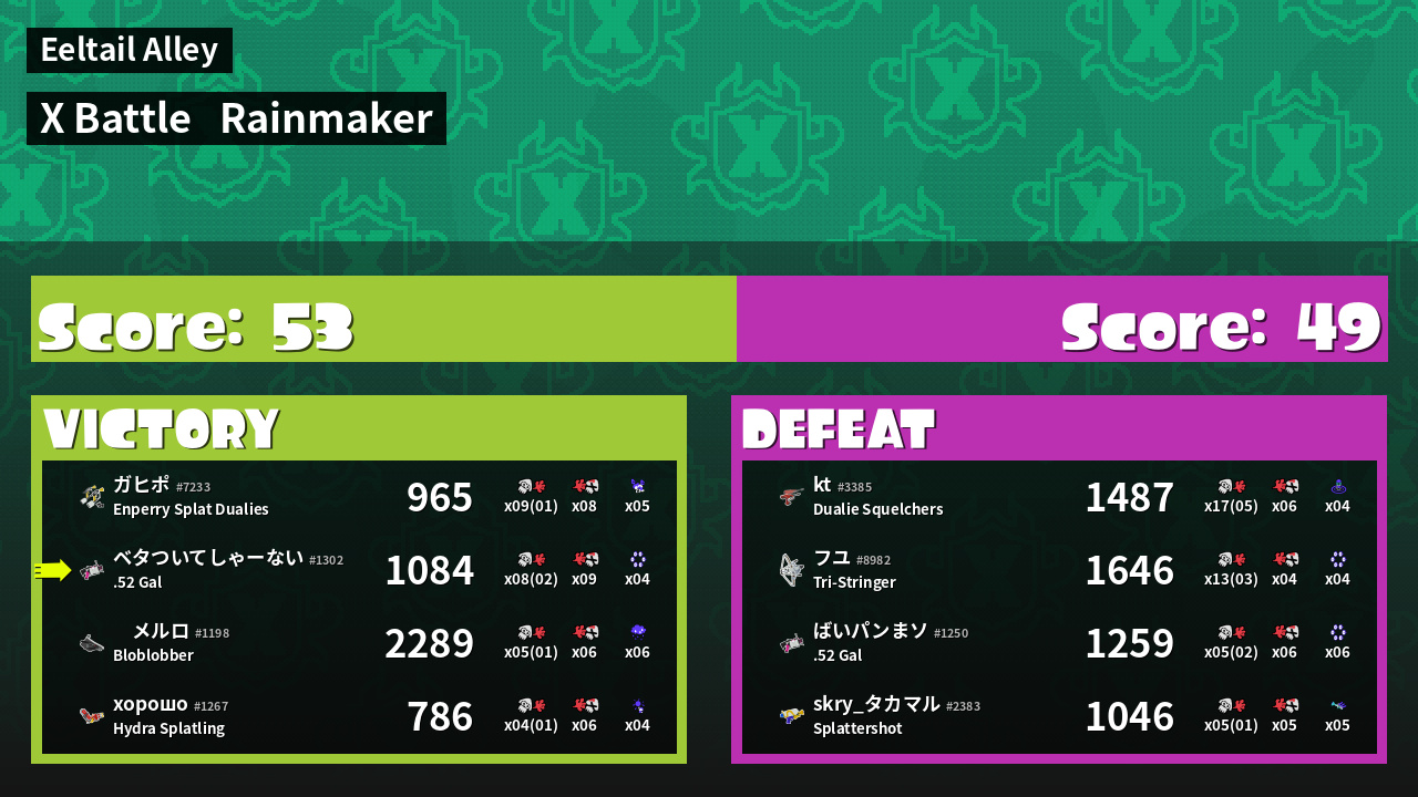 | Medals | #1 Score Booster #1 Popular Target #1 Splat Assister | ||