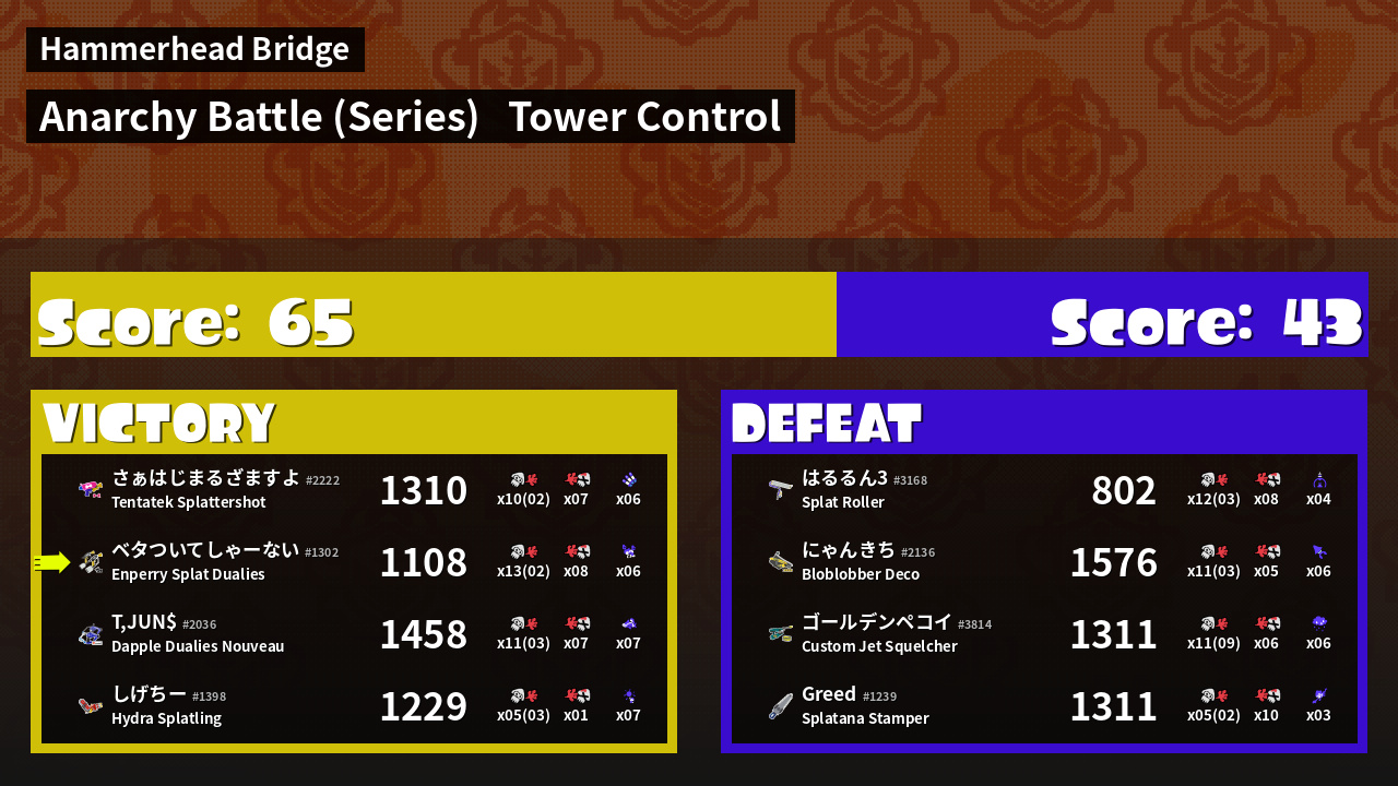 | Weapon | Enperry Splat Dualies ( Curling Bomb / Triple Splashdown) | ||