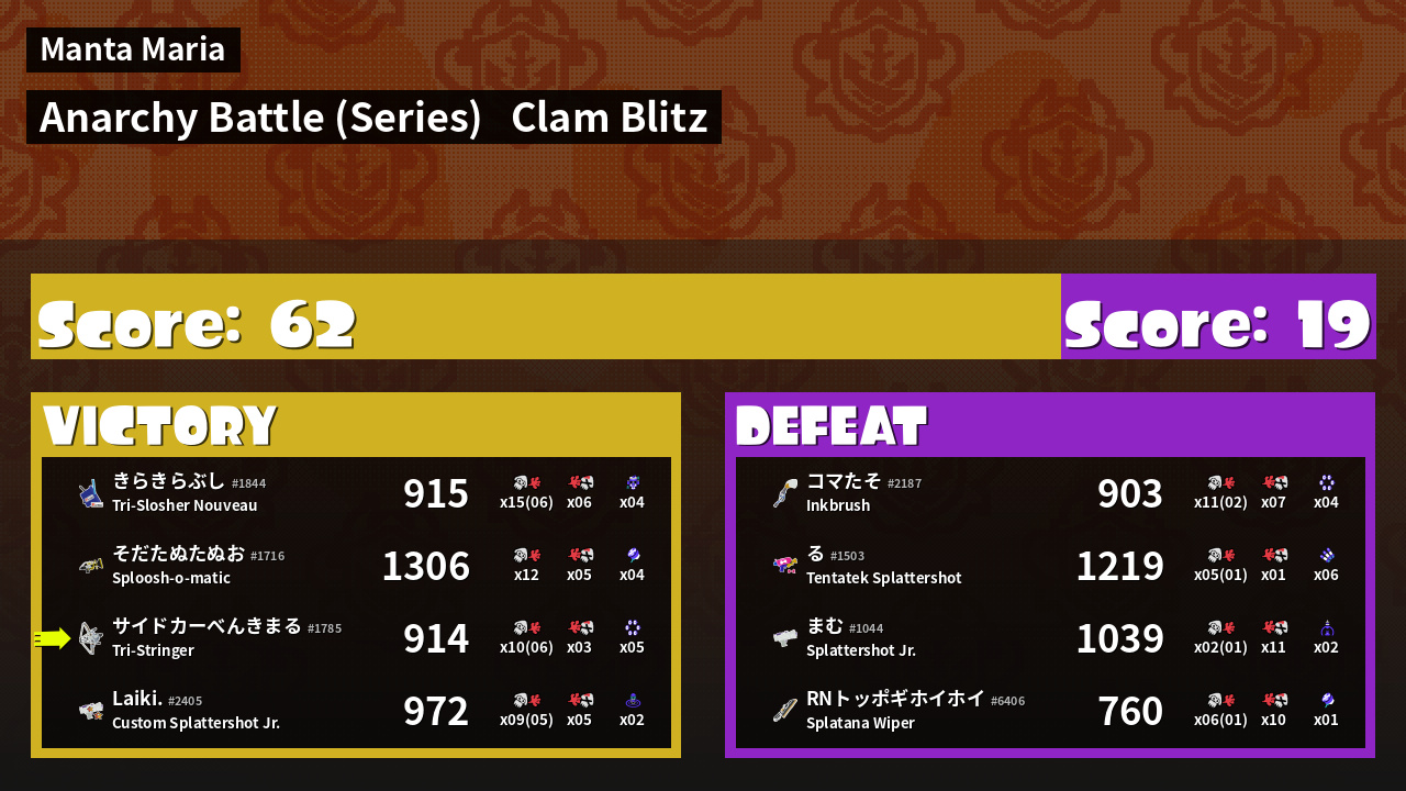 | Mode | Clam Blitz - Anarchy Battle (Series) | ||