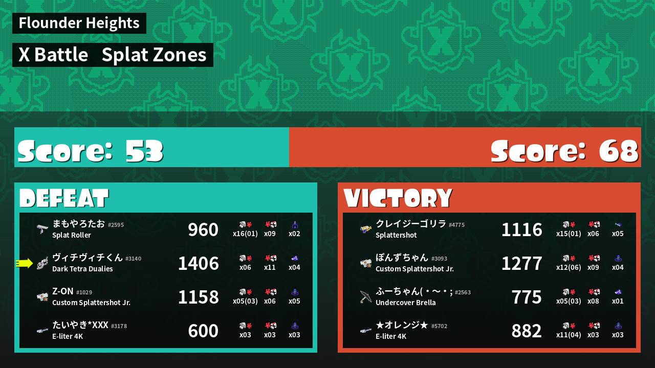 | Mode | Splat Zones - X Battle | ||