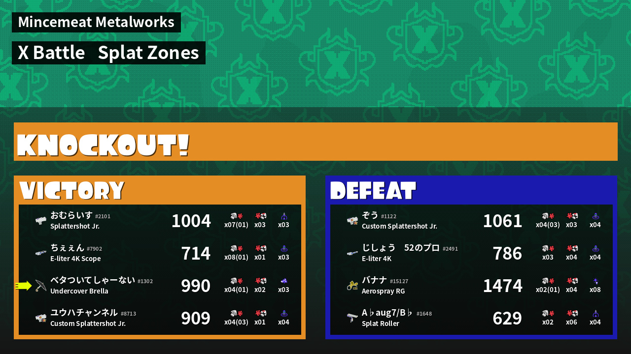 | Mode | Splat Zones - X Battle | ||
