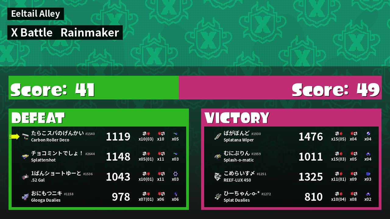 | Mode | Rainmaker - X Battle | ||