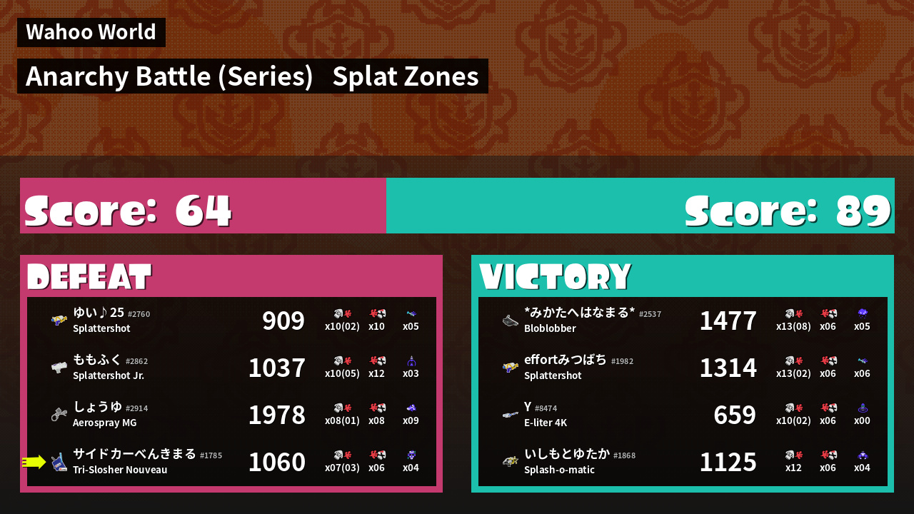 | Mode | Splat Zones - Anarchy Battle (Series) | ||
