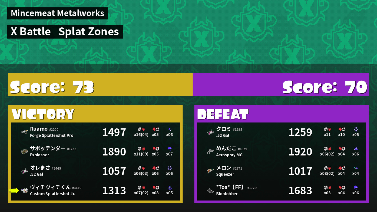 | Medals | #1 Wave Breaker User #2 Splat Zone Guard #2 Enemy Splatter | ||