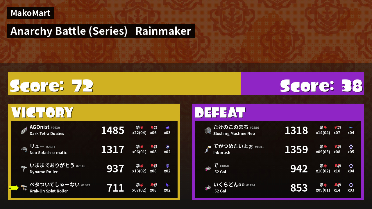 | Mode | Rainmaker - Anarchy Battle (Series) | ||