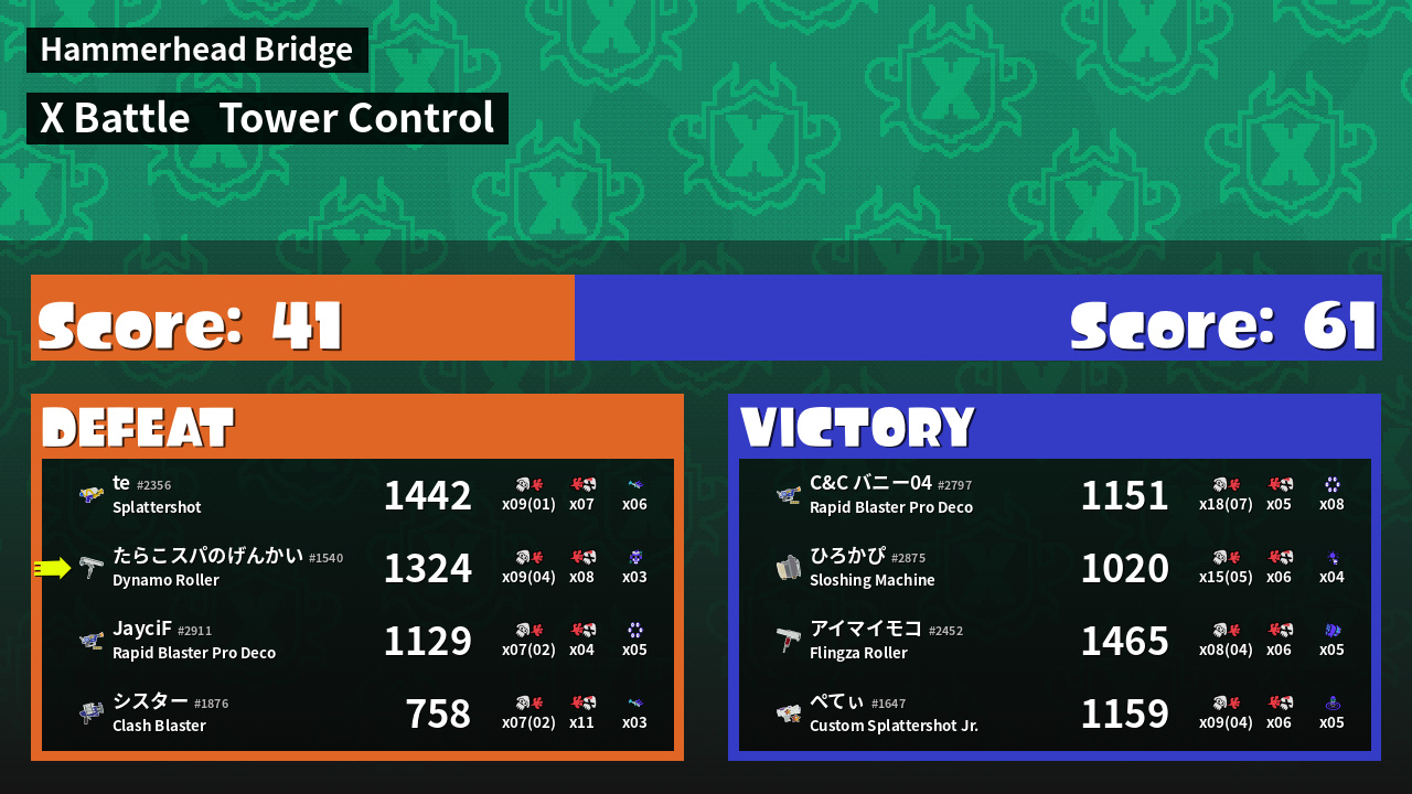 | Mode | Tower Control - X Battle | ||